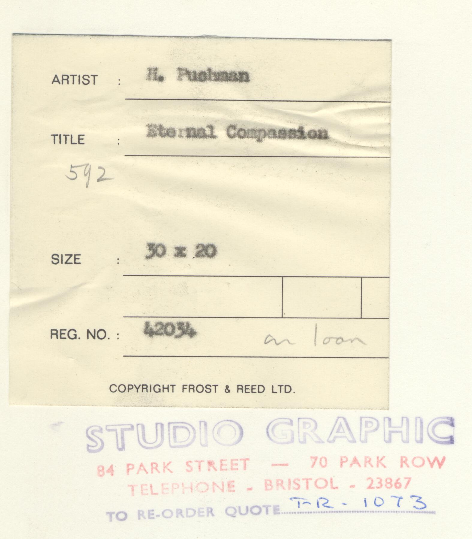 Notes: "Eternal Compassion", was painted by Hovsep Pushman, circa 1950. The painting is signed, lower right, and is listed in the Pushman inventory journal, #592.