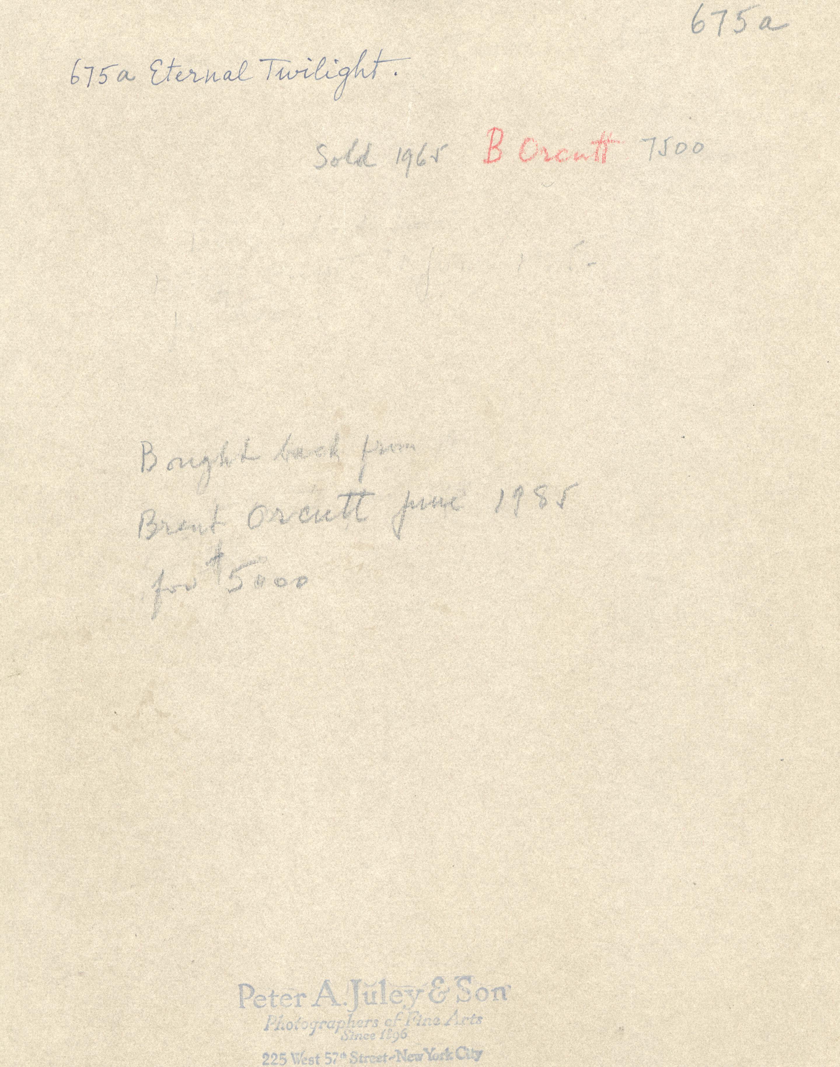 Provenance: Pushman Studio, NY; Grand Central Gallery, NY; Sold: Orcutt, 1965, Bought back by Armand Pushman, 1985