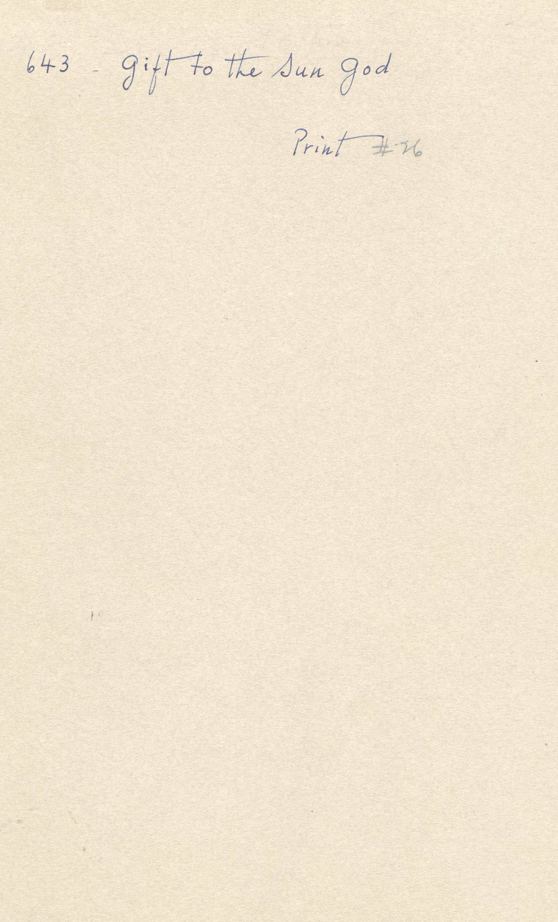 Notes: "Gift to The Sun God", was painted by Hovsep Pushman, circa 1960. The painting is signed, lower left, and is listed in the Pushman inventory journal, #643.
