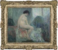 Notes: Le Reveil (The Awakening) by Hovsep Pushman was painted circa. 1920. It is No. 825 in the Pushman inventory of works. The painting is oil on canvas measuring 21x 21 inches and signed lower left and housed is a Pushman selected period European frame.