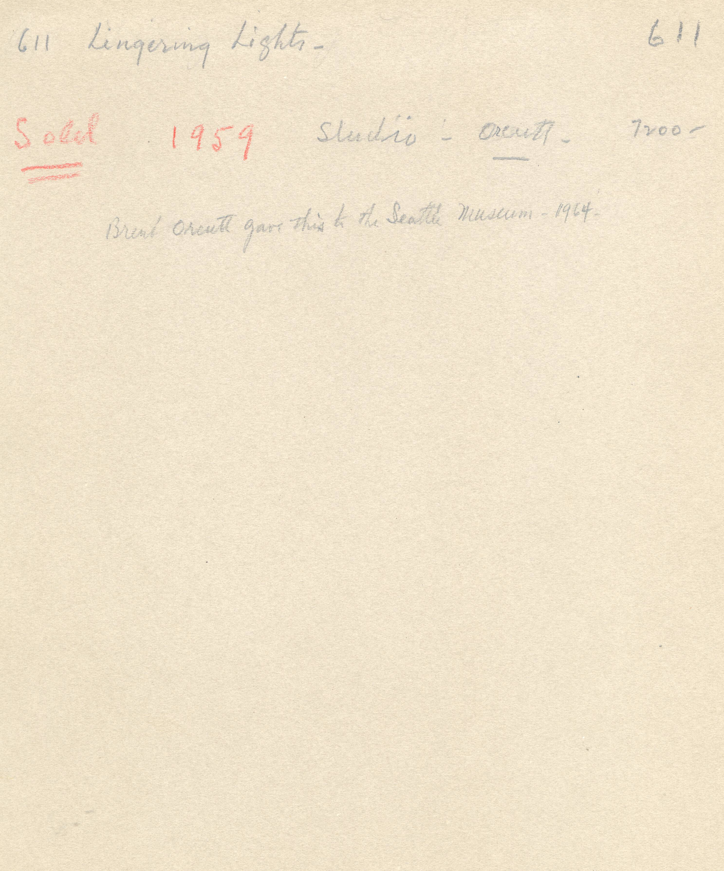 Notes: "Lingering Lights, #611," was painted by Hovsep Pushman, circa 1950. The painting is signed, lower left, and is listed in the Pushman inventory journal, #611.