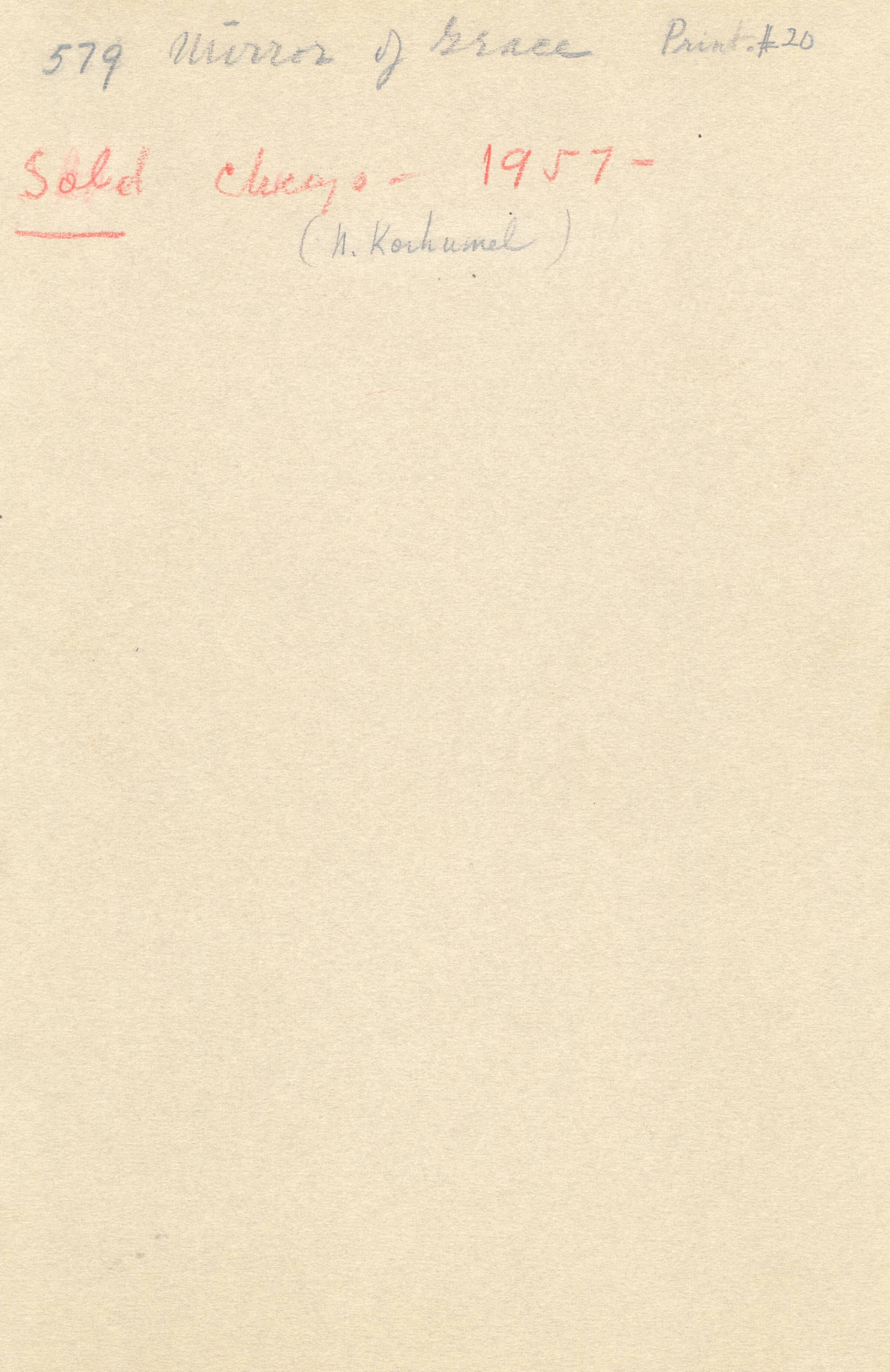 Notes: "Mirror Of Grace, #579," was painted by Hovsep Pushman, circa 1950. The painting is signed, lower left, and is listed in the Pushman inventory journal, #579. The print was published by Frost & Reed, 1953.
