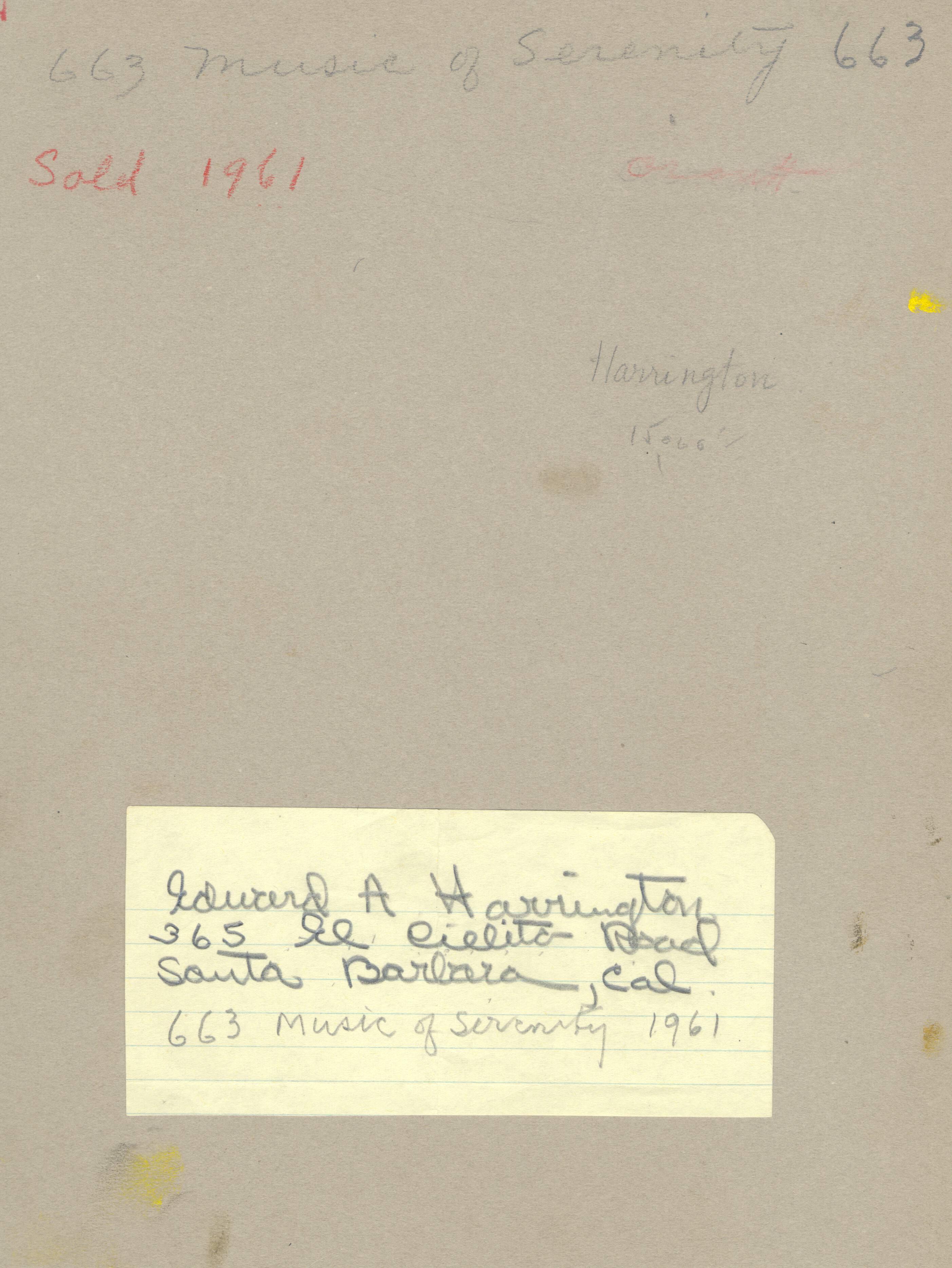 Notes: "Music of Serenity, #663," was painted by Hovsep Pushman, circa 1950. The painting is signed, lower right, and is listed in the Pushman inventory journal, #663.