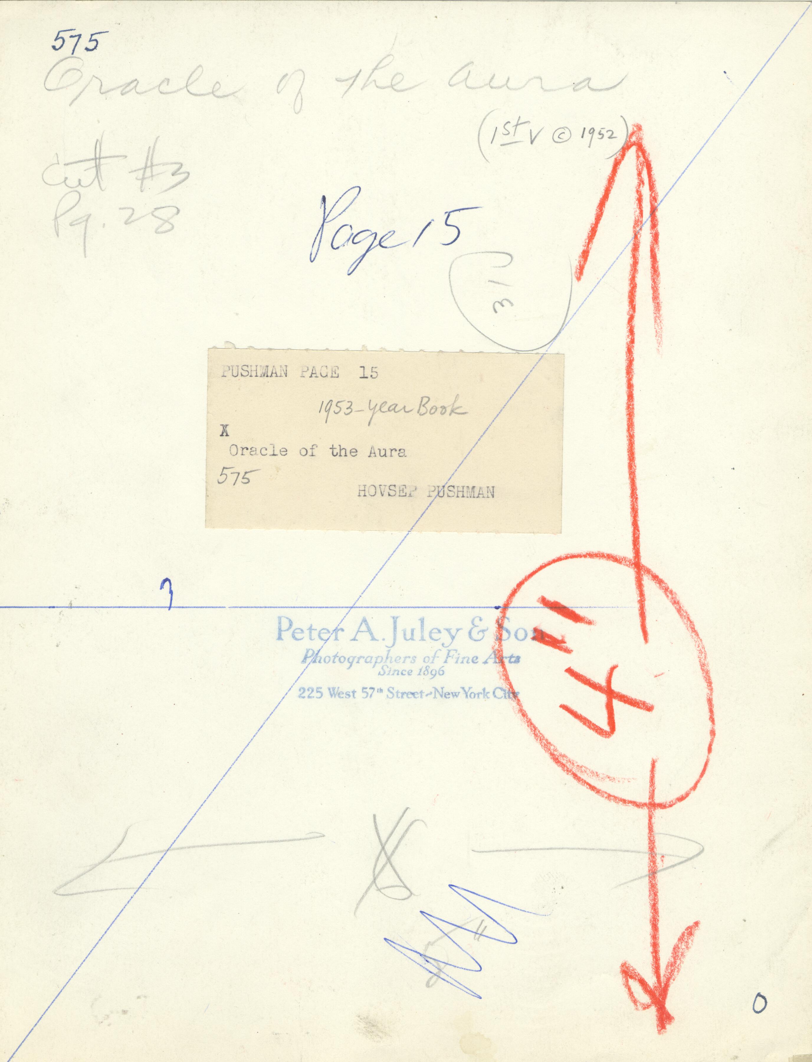 Notes: "Oracle of the Aura", was painted by Hovsep Pushman, circa 1950. It is listed on page 15 of the 1953 Hovsep Pushman yearbook. The painting was later painted over and adjustments were made to its composition. The title of the piece was changed to, "Radiant Benediction". It is signed, lower left, and is listed in the Pushman inventory journal, #575.