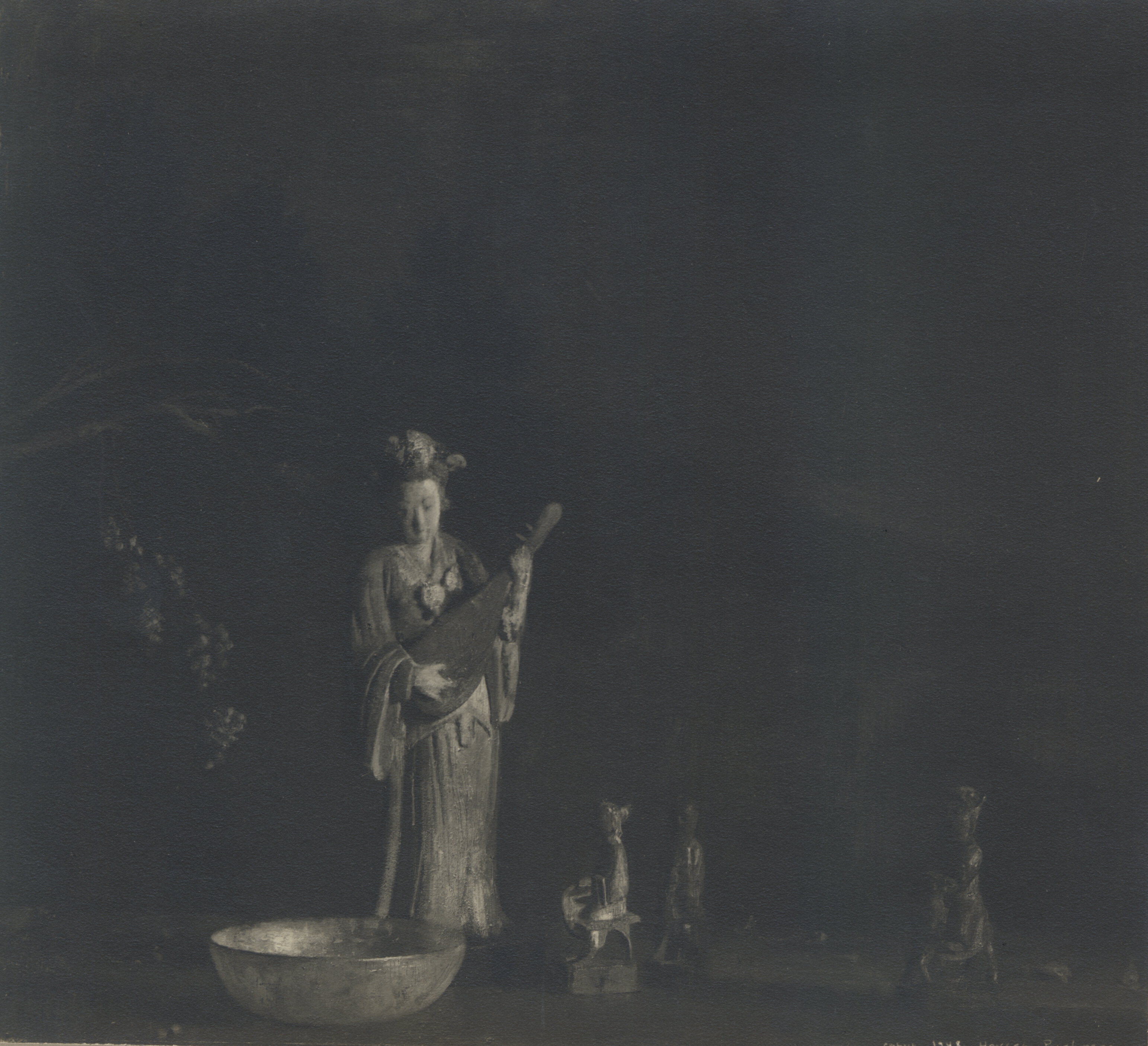 Notes: "Serenade to the Gods, #510," was painted by Hovsep Pushman, c. 1940. It is signed, lower left, and is listed in the Pushman inventory journal, #510. The painting is housed in an original, Pushman designed frame.