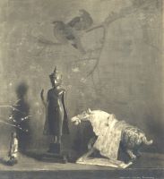 Notes: "Shelter of The Night, #356," was painted by Hovsep Pushman, circa 1940 and housed in a Pushman selected frame. The original painting was painted over and given a new title. It is signed, lower right, and is listed in the Pushman inventory journal, #356.