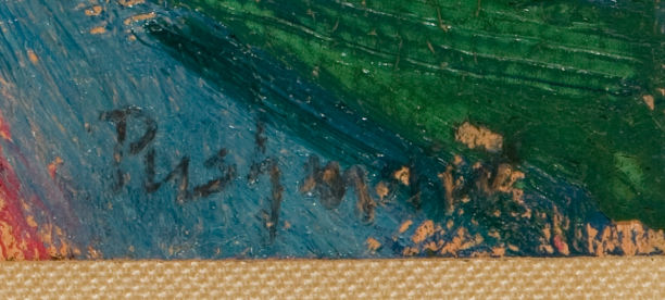 Notes: "Songs from India, no. 191," was painted by Hovsep Pushman, circa 1920. It is listed in the Pushman inventory journal, #191. The painting has a minor abrasion to the lower left extreme corner; small abrasion above artist's signture; otherwise visually in very good condition; not examined outside of frame. Framed under plexi-glass. Italian, 18th Century, hand carved and gilded, foliate frame. Framed Dimensions 25.25 X 19.25 Inches . NOTE: This lot will be included in Lucy Ishkanian's forthcoming catalogue raisonné of the complete works of Hovsep Pushman.