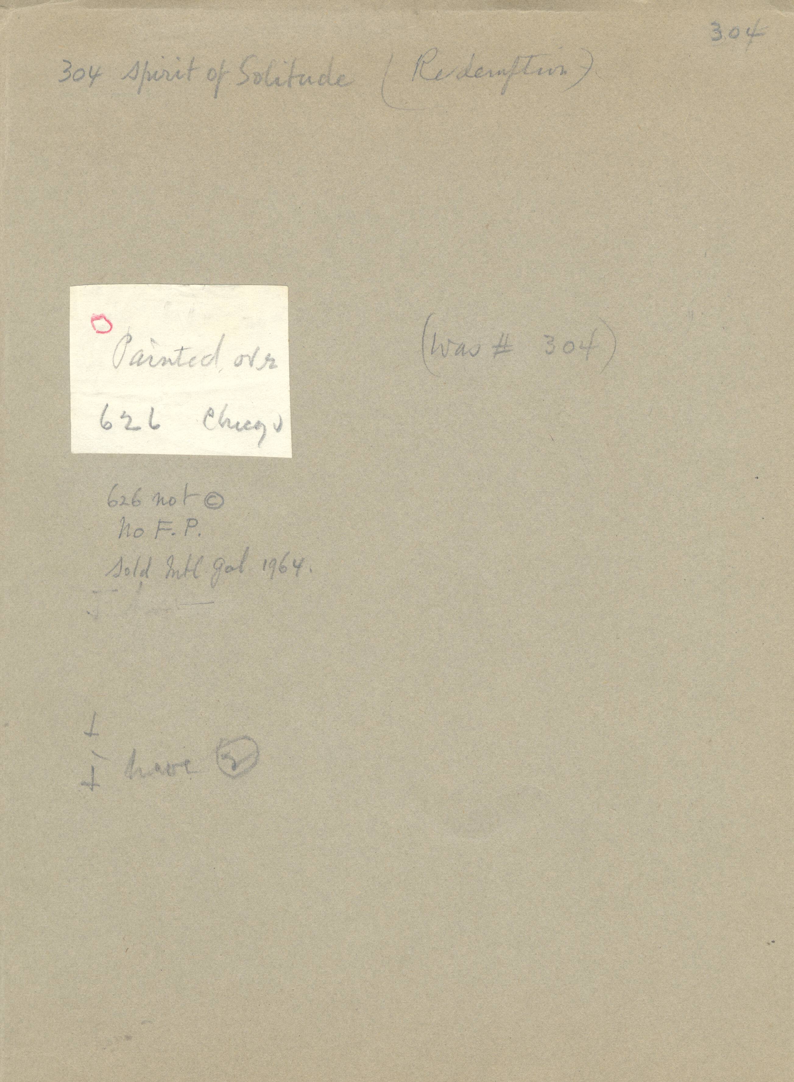 Notes: "Spirit of Solitude (Redemption), #626," was painted by Hovsep Pushman, circa 1930-1940. The painting is signed, lower left, and is listed in the Pushman inventory journal, #626. It was originally numbered #304 but was painted over and given a new number.