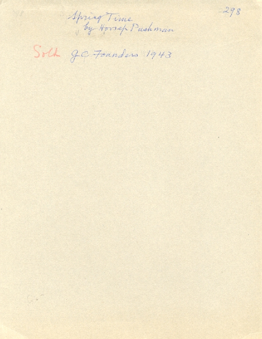 Notes: "Spring Time, #298", by Hovsep Pushman, was painted in 1941. The painting is listed in the Pushman inventory journal, #298.
