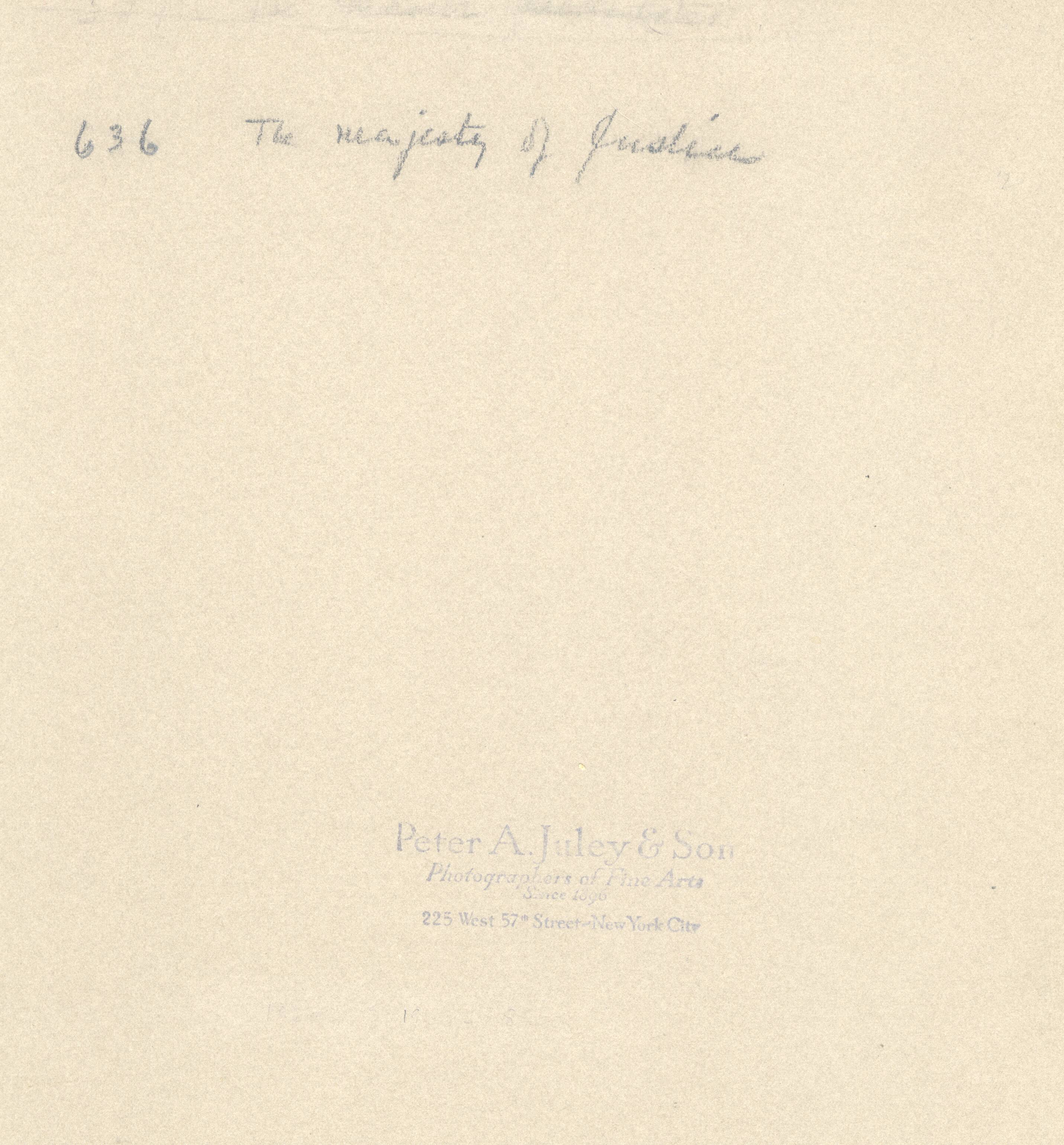 Notes: "The Majesty of Justice", was painted by Hovsep Pushman, circa 1950. The painting is signed, lower right, Pushman. It is listed in the Pushman inventory journal, #636.