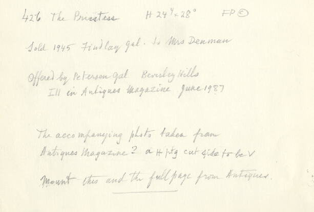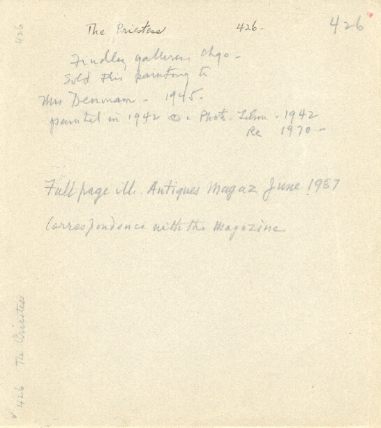 Notes: "The Priestess, #426," was painted by Hovsep Pushman in 1942. It is signed, lower right, and listed in the Pushman inventory journal, #426