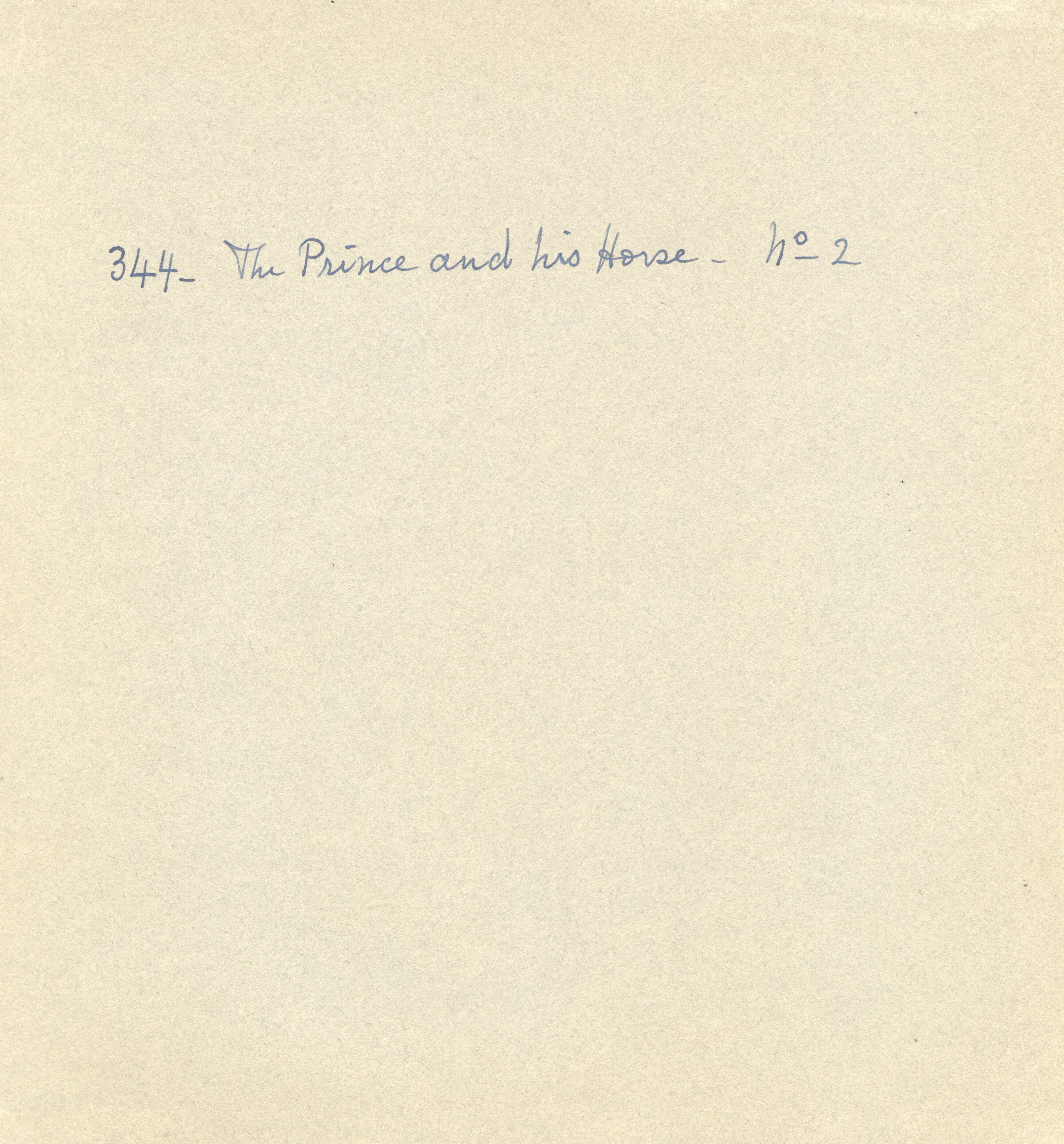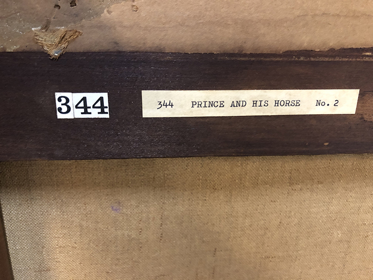 Notes: "The Prince and His Horse, #344, No. 2" was painted by Hovsep Pushman, circa 1930-1940. The painting is signed, lower middle, and is listed in the Pushman inventory journal, #344 and No. 2.
