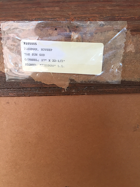 Notes: "The Sun God", was painted by Hovsep Pushman, circa 1940-1950. The painting is signed lower left, 'Pushman' and is housed in a period, Pushman-selected frame.