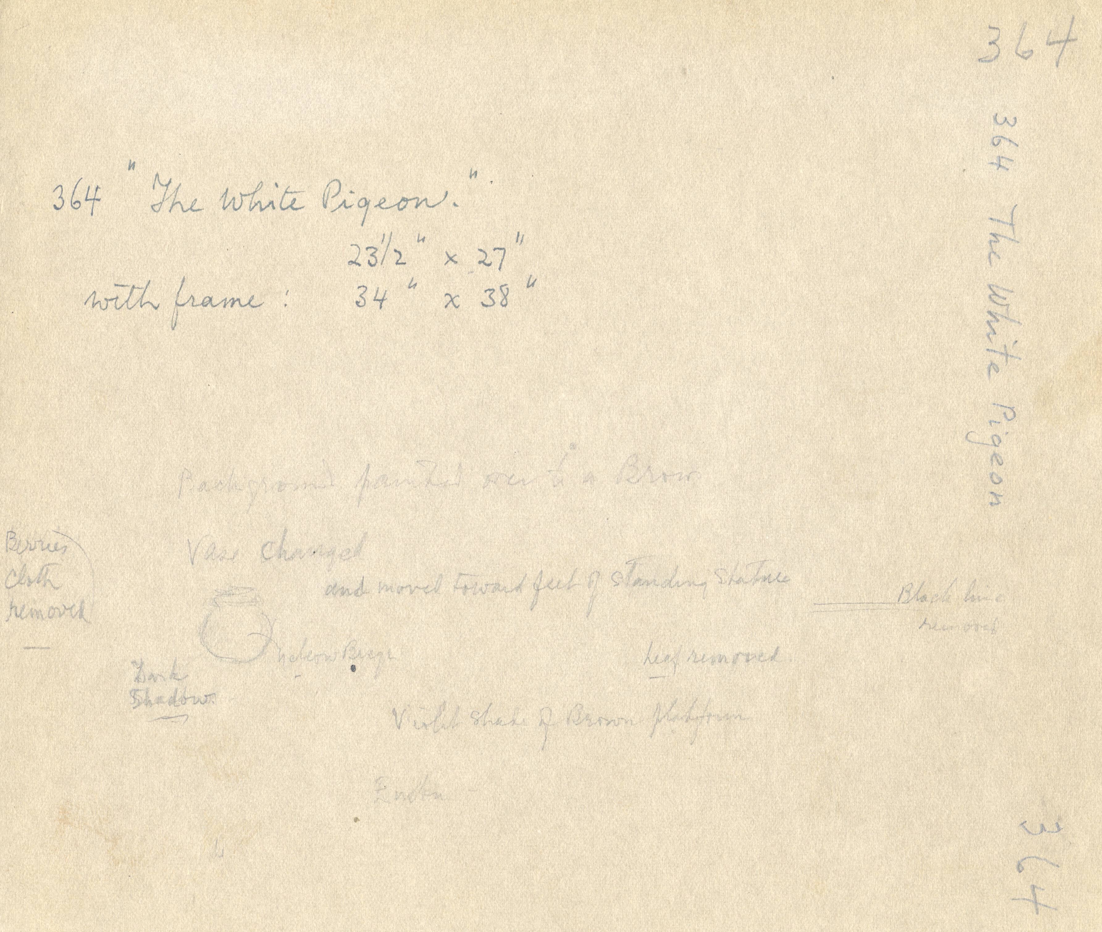 Notes: "The White Pigeon, #364," was painted by Hovsep Pushman, circa 1940. The original painting was painted over and is housed in a hand selected, Pushman frame. It is signed, lower left, and is listed in the Pushman inventory journal, #364.