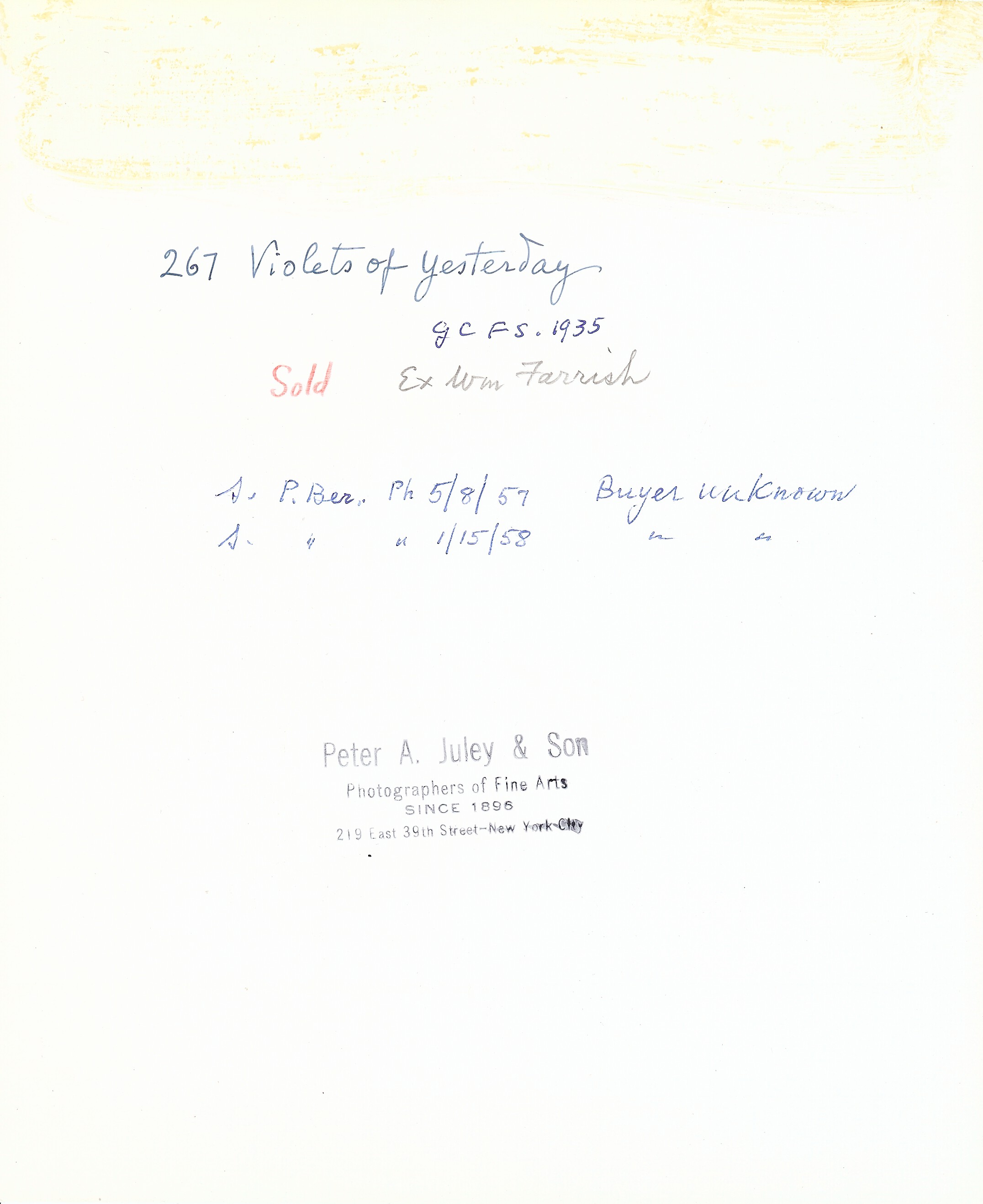 Notes: "Violets of Yesterday, #267", was painted by Hovsep Pushman in 1937. The painting is in the Pushman inventory journal, #267.