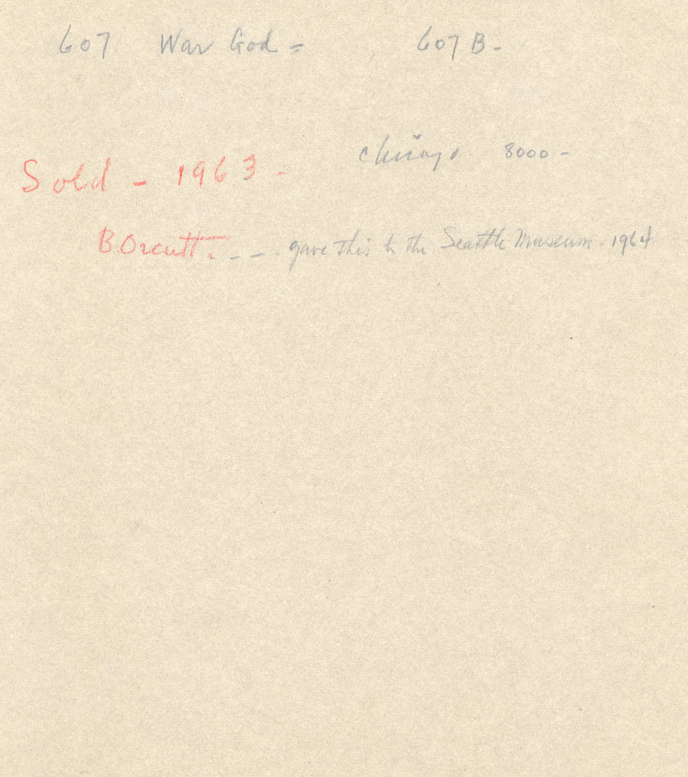 Provenance: Pushman Studio, NY; Grand Central Gallery, NY; Sold: Orcutt, Chicago, 1963; gave to the Seattle Museum, 1964